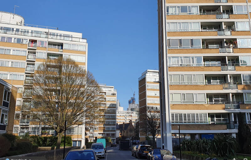 Churchill Gardens is a large housing estate covering the south-west corner of Pimlico. It was developed between 1946 and 1962 to a design by the architects Powell and Moya, replacing docks, industrial works, and several Cubitt terraces damaged in the Blitz.