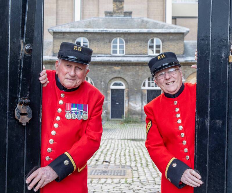 400 CP live here, in scarlet/navy blue attire, you see them walking along the King’s Road and the wider, or on the buses… They are selected amongs ex servicemen/women, who have given good service “by flood and field”. In permanent pension, without dependents.