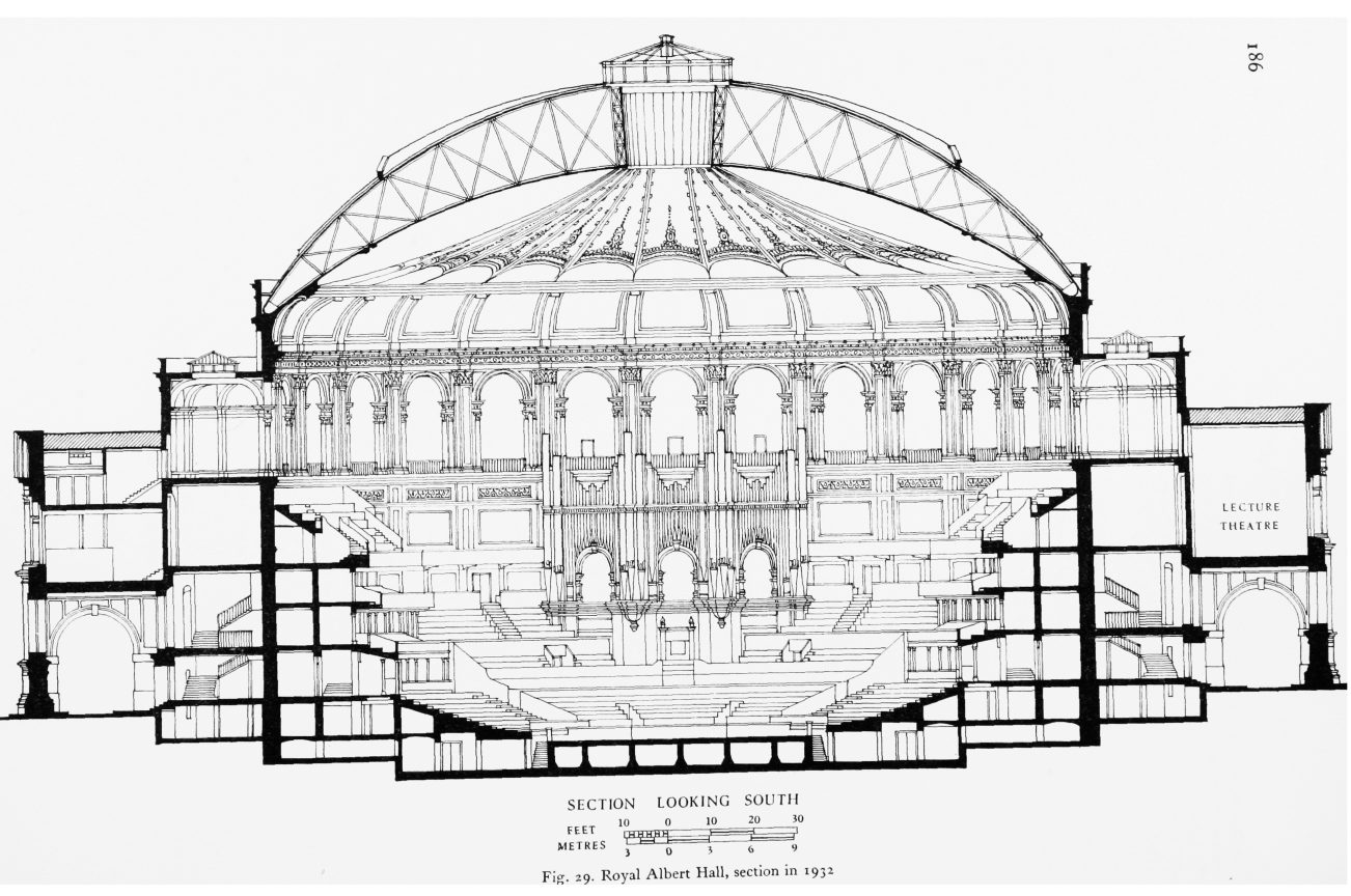 The RAH became the venue for all sorts of exhibitions, bazaars, festivals and concerts - even though the acoustics were terrible, including a terrible echo. It was said to be the place where British composers could be sure of hearing their work twice. Not until the 1960s was this finally sorted out, with "MUSHROOMS" suspended from the roof. Now it is one of the most flexible venues in London, housing events from the PROMS  to Cirque de Soleil.