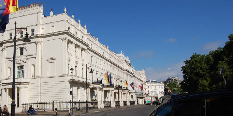 The residence of the President of the Republic of Poland, known as "The Castle", was first located in Bryanston Court at 56 Great Cumberland Place and then here at 43 Eaton Place.