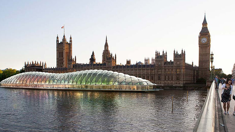 A team of consultants proposed the temporary relocation of the two debating chambers and associated facilities onto the three Woolwich Ferry hulls which are due to be decommissioned in Autumn 2018. The proposal, which they called HMS Parliament, had the vessels moored outside the Palace of Westminster and was estimated to cost £55m.